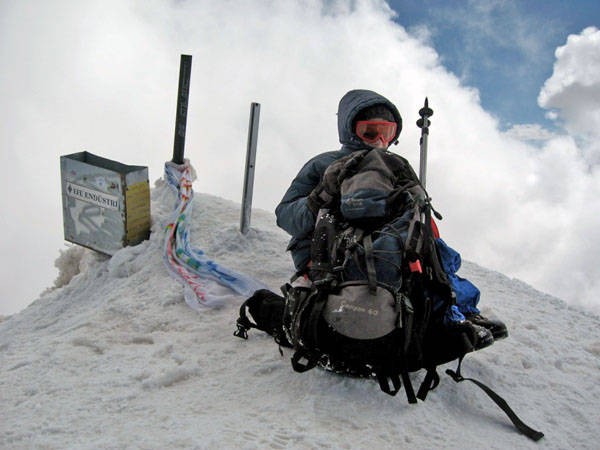 В лагере 4200 было много народу. Скопились альпинисты разных стран. Всех их практически сдуло с высоты 4500-4600 при попытке восхождения. Все выходили на гору в 2-3 утра и возвращались из-за непогоды в 5-6. Времени у нас было много, мы уже на второй день достигли второго лагеря на 4200 и поэтому не спешили, думали третий день сходить на 4700 на акклиматизацию. Поэтому встали как-то не особенно рано. А тут гора показалась. Окно погоды. И мы решили попробовать. Вышли наверх в 9.30 утра. С 4600 Дмитрий Колотий и его жена Ольга повернули вниз. Не хватило акклиматизации. А я, Артур старший и именинник Артур младший в 16.30 достигли вершины. Так получилось, что именно в День своего рождения, даже именно в час своего рождения, Артур Аветисян младший стоял на вершине горы Арарат 5135 метров.