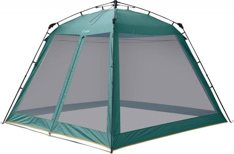 Высокий тент-беседка с полуавтоматическим каркасом, телескопические стойки. Легко ставиться одним человеком за 1 минуту. Облегченная регулировка оттяжек со световозвращающей нитью. Москитная сетка по всем сторонам.